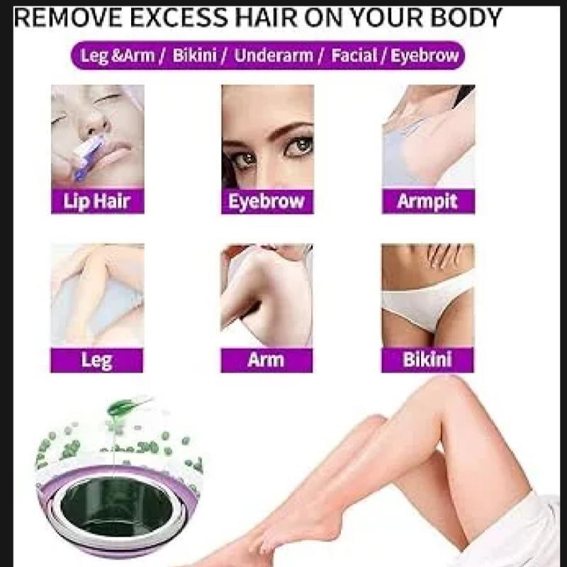 • Hard Wax BeansThe hard wax beans is a physical process, without hurt the skin, no harms to your health. Hard Wax Beans Contains moisturizing Cocoa Butter, excellent for dry skin.Large fixed roller head is ideal for leg waxing.Provides a thin, economic and hygienic application. Developed for all types of skin. For hair removal on all body parts.It is a must for hair removal.